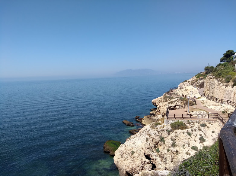 A lo lejos, mirando al Oeste se puede ver Málaga, Torremolinos y Benalmadena, la capital y los municipios contiguos que forman parte de la famosa Costa del Sol.