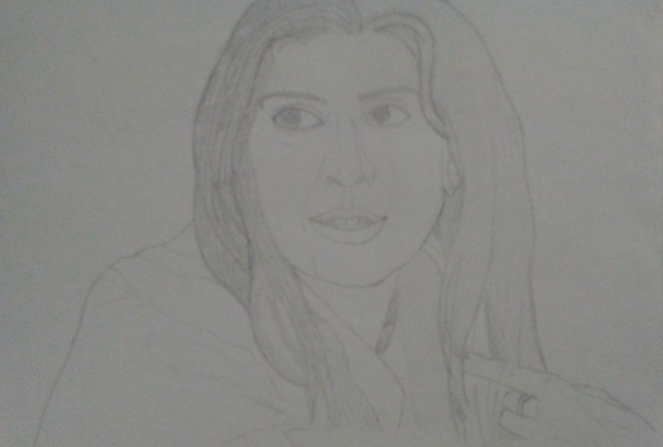 Lo siguiente fue agregar detalles de la cara y la ropa con el mismo lápiz para después agregar las cejas, pestañas y cabello con el lápiz 2B.
