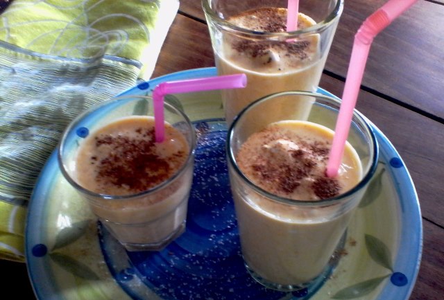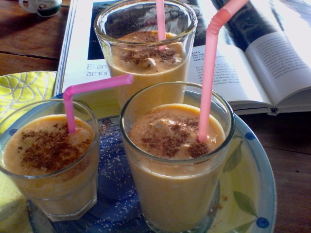 Listo, verificado esto; procedemos a crear en la cocina venezolana el Lassi con nuestro melocotón de los trópicos, leche de coco y nata.