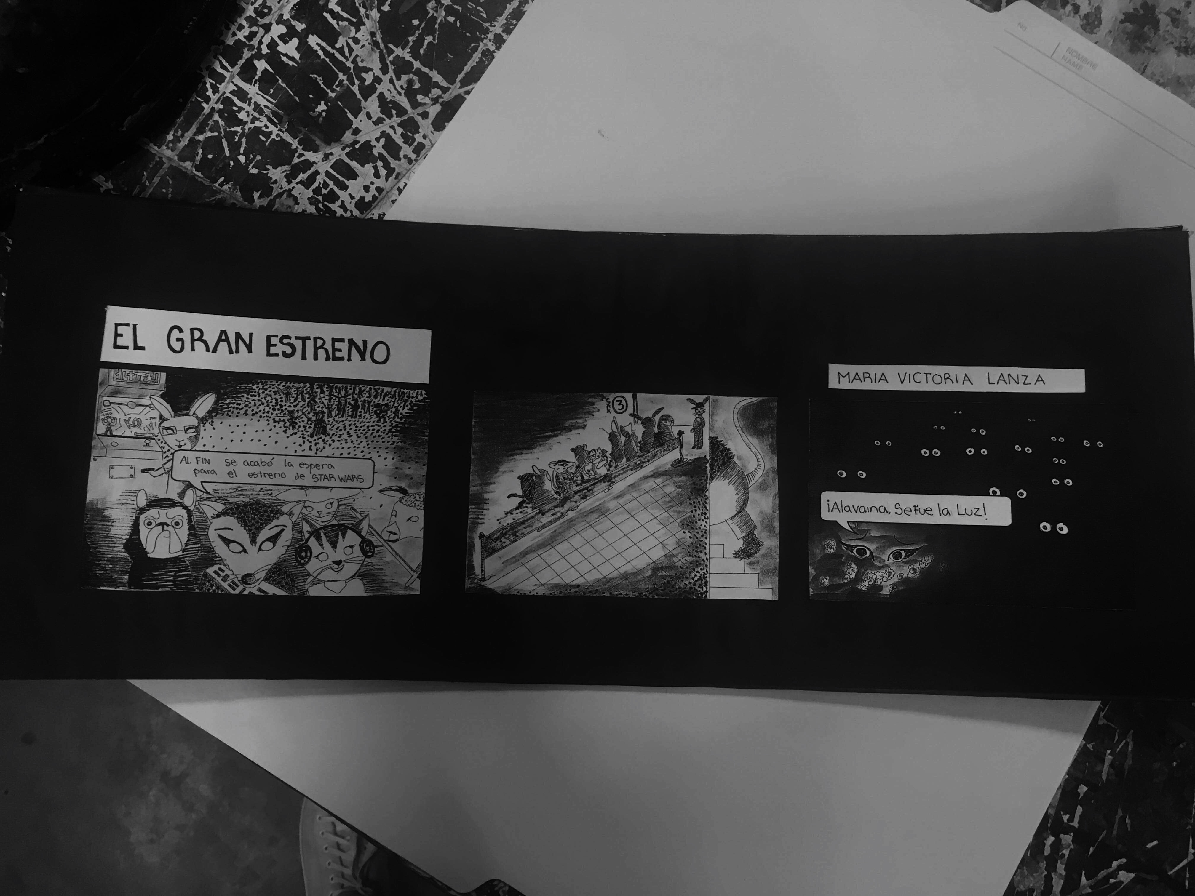Para mi fue un reto el saber resumir tanto a solo 3 viñetas pero es genial aprender a poner solo lo esencial para que solo con imágenes prácticamente se entendiera que estaba pasando... La verdad no quede satisfecha en el resultado pero ya al saber como se hace se que tengo mis ideas mas claras para las próximas tareas o comics mas personales (me dio mucha risa que en la ultima viñeta yo planeaba poner algo como ¡oh no, se fue la luz! y el profesor me dijo como no no eso no da risa, por ¡a la vaina! y yo jajaja ok)