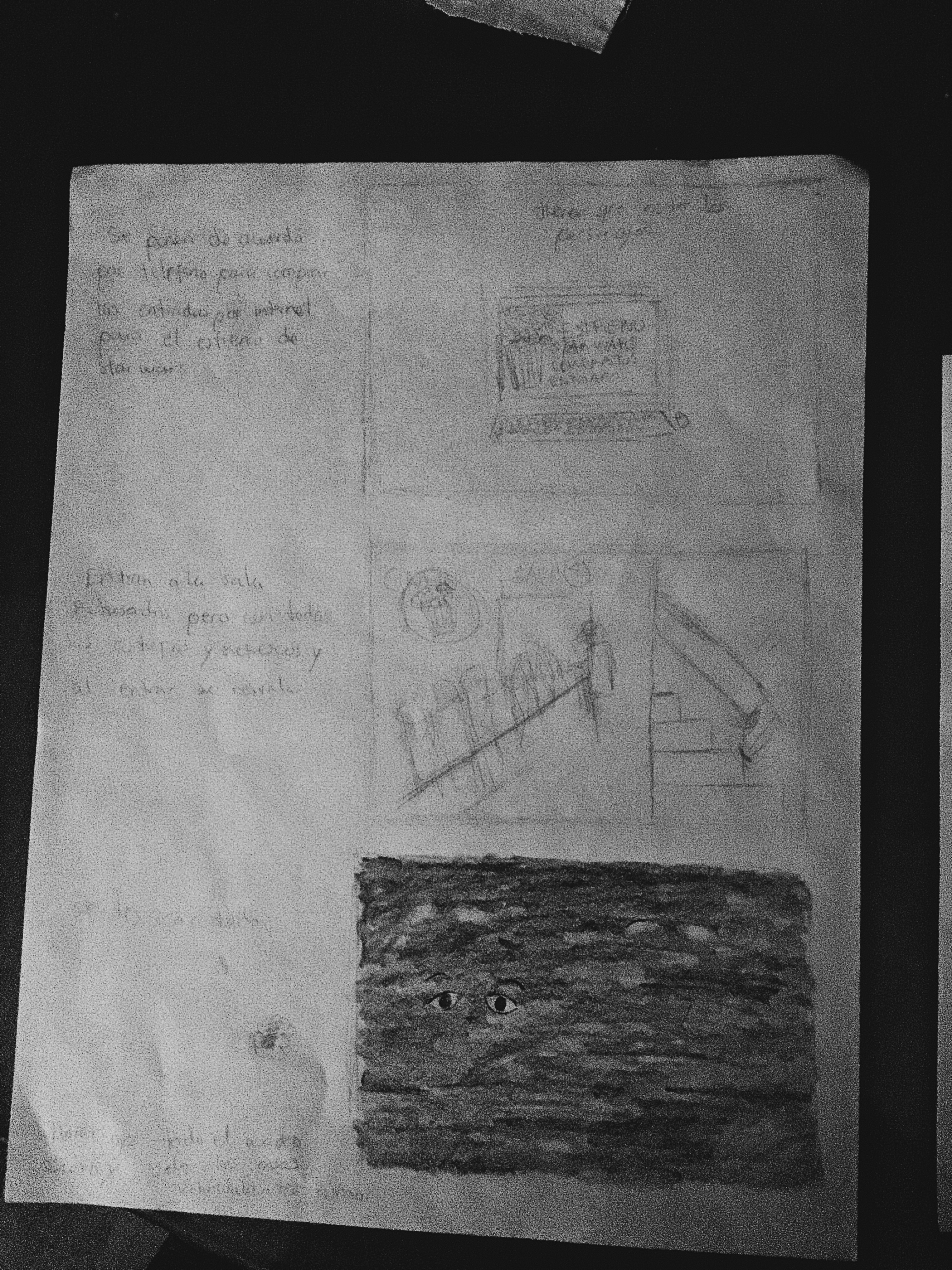 Era el momento de hacer el storyboard que es hacer las ilustraciones de forma rápida y sin mucho detalle solo para saber como van a ser los planos y como van a ir ubicados los elementos dentro de las viñetas, y al lado (realmente depende) de las viñetas lo que va sucediendo en las mismas