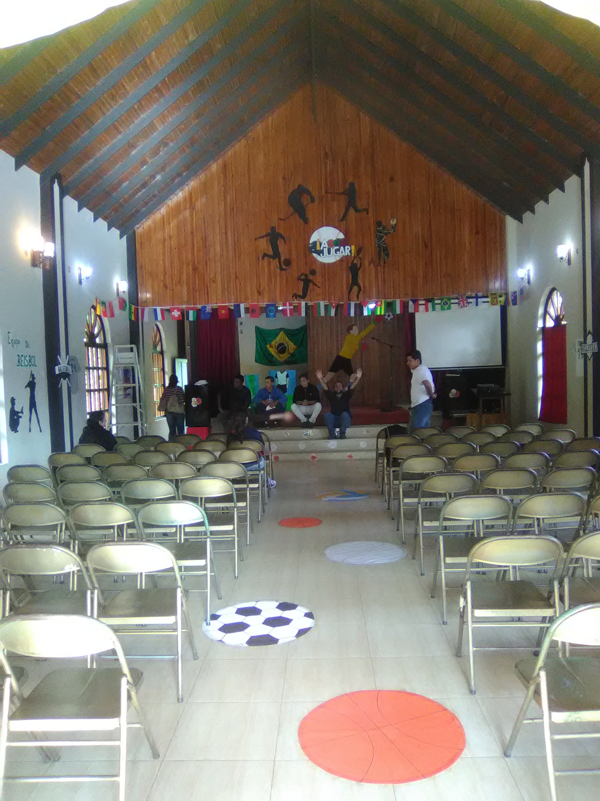 Éste año el tema de la EBV fue "A Jugar" y tenía que ver en todo con deportes, trabajamos con niños, adolescentes y jóvenes los cuales estaban divididos de acuerdo a su edad en 4 equipos, quedando de la siguiente manera: