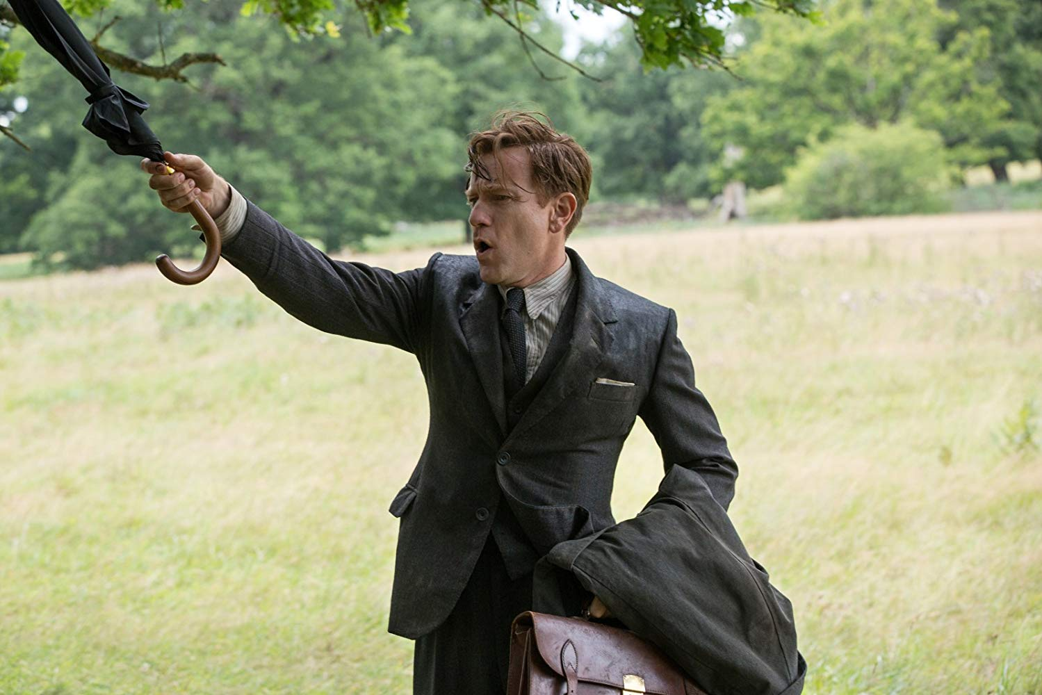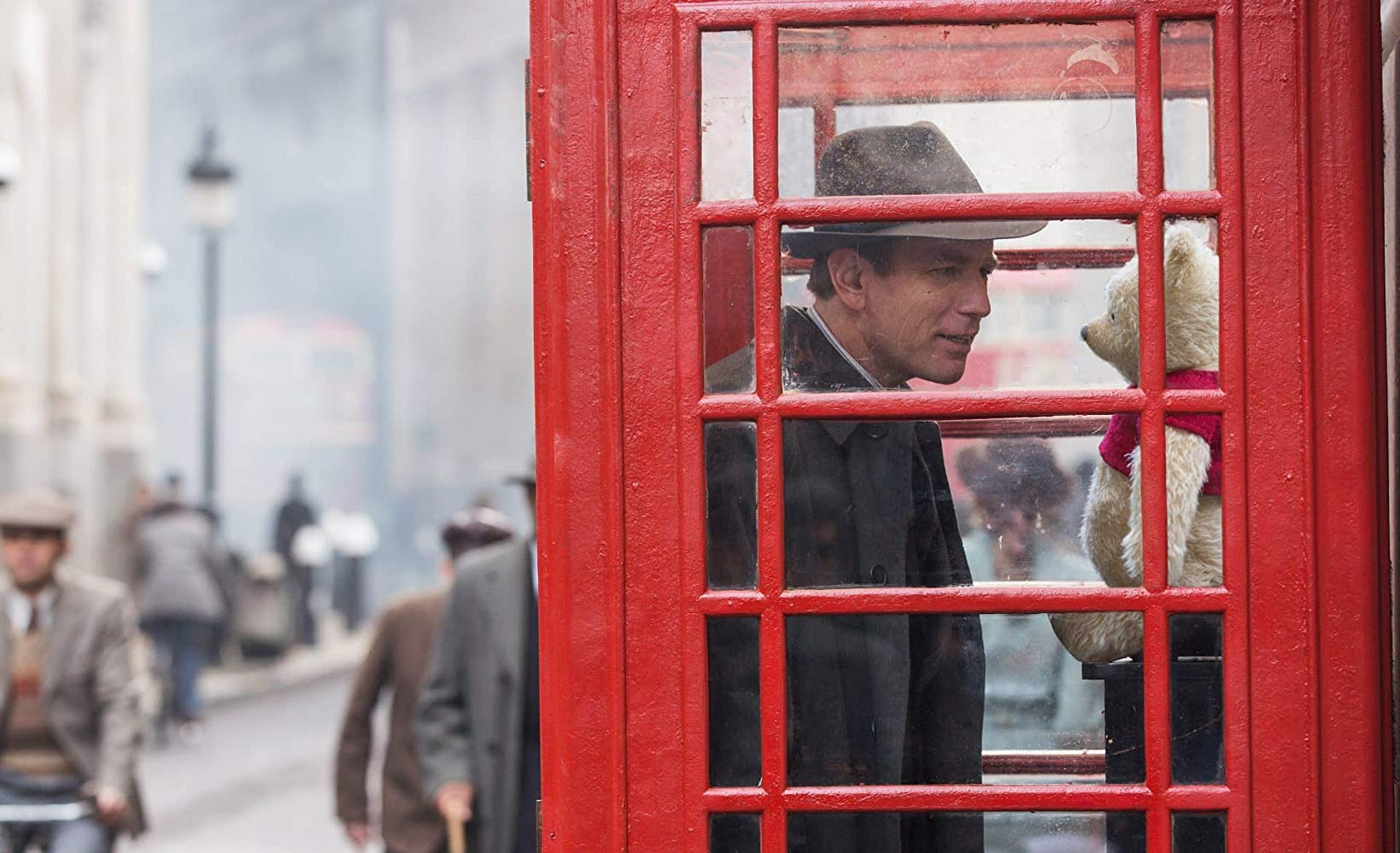 Ahora bien, uno de los problemas que tengo con la película es Christopher Robin… en la primera mitad de la película. Esta es la mitad donde muestran a Robin tan enojado con la vida, amargado y como si quisiera que ya llegaramos al final de la película. Sí, se que la pelicula trata de que el mejore esta actitud, pero realmente parecía que su personaje no estuviera cumpliendo con el tono realista de su mundo… Esperen le explico esto de lo “realista”. Yo siento que el mayor problema de la pelicula es cuando los dos mundos finalmente se juntan, por un lado muestran a Robin yendo a la guerra, y por el otro muestran a un osito diciendo tonterías. Me refiero, la manera en la que muestran a Robin estando molesto con Winnie Pooh lo hacen parecer una caricatura, cuando se supone que el viene de la parte del mundo real. Y la manera en la que hacían parecer a Christopher Robin tan severo, parecía que este no estuviera cumpliendo con el realismo de su propio mundo.