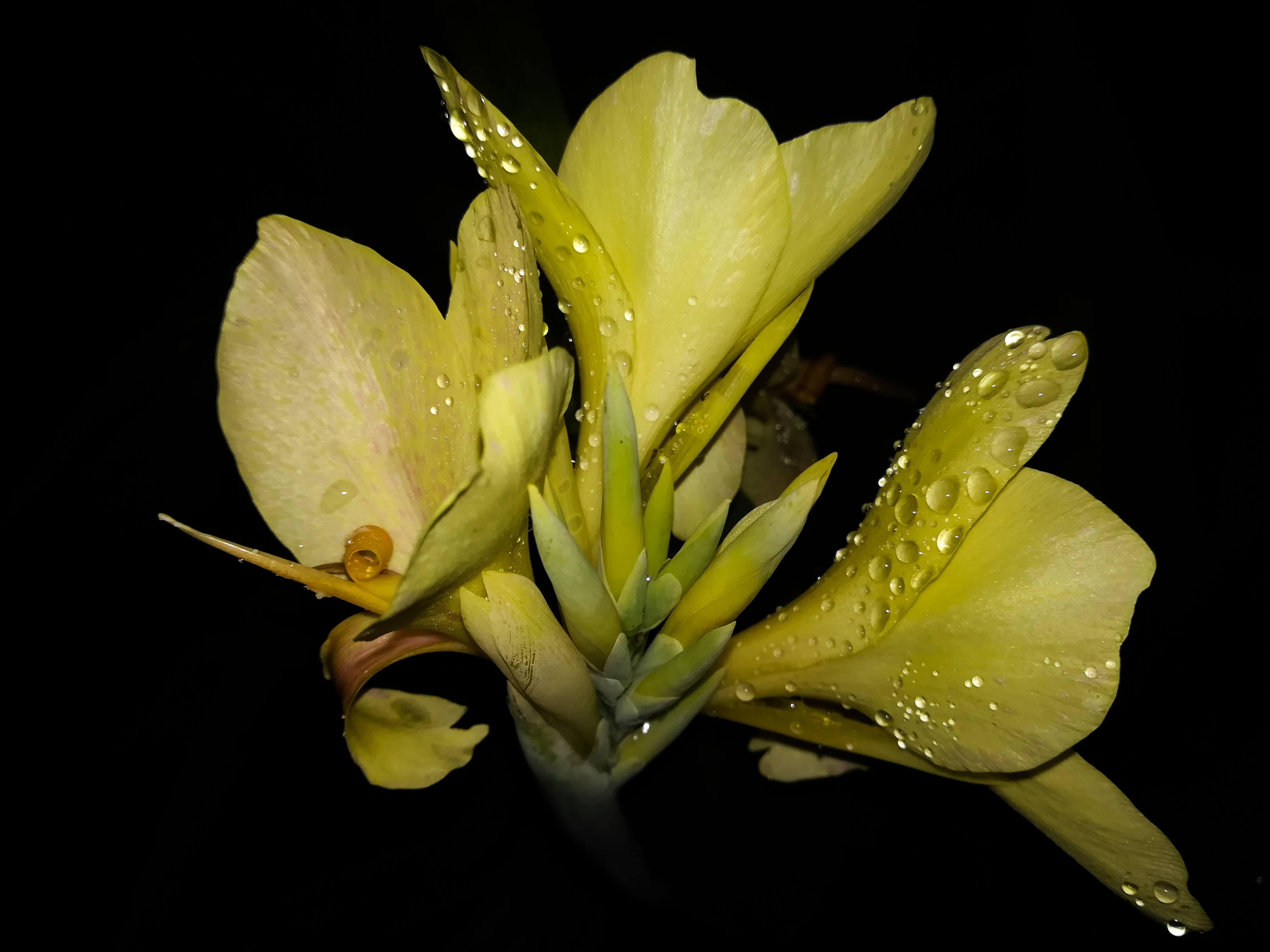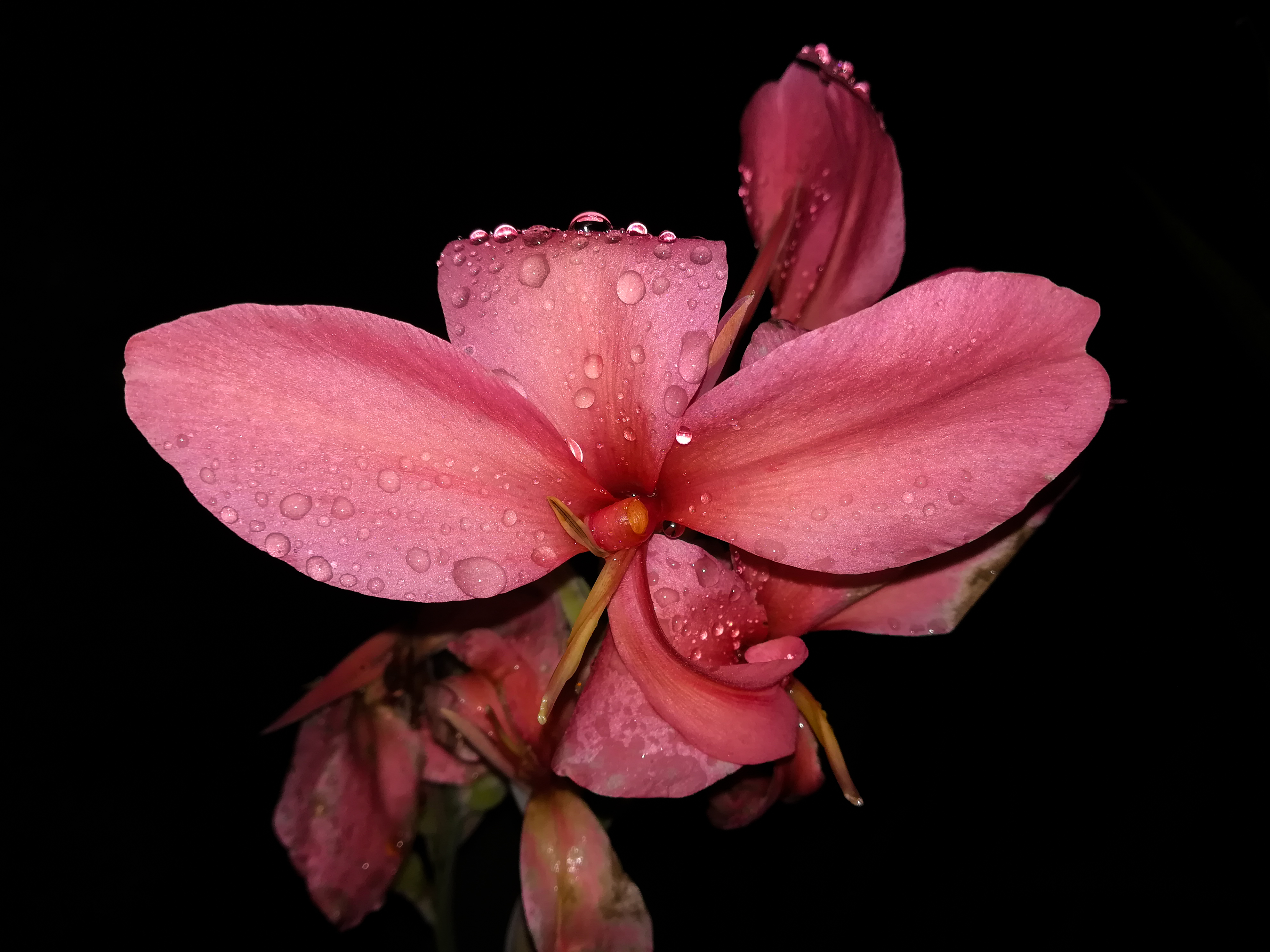 Así que pensé en utilizar una cartulina negra, esto me dio mejores resultados, seguí haciendo pruebas pero aun no encontraba la magia que quería lograr en el aspecto de las flores, así que recordé que en el pasado les había mostrado unas fotografías que tome después de la lluvia y los detalles del agua mejoraban un montón las fotos, tome un atomizador con agua y empece a darles roció a las partes que quería retratar, el resultado mejoro notablemente, me sorprendió como el flash daba magia al reflejarse en las gotas y seguí haciendo muchas fotos, seguido de esto seleccione las que para mi fueron las mejores y las lleve a un leve proceso de post-producción usando el programa Ligthroom, en el cual configure solamente el contraste aumentándolo un poco y reduciendo las sombras, luego las exporte y este es el resultado que obtuve, es algo sencillo pero de mucha utilidad.