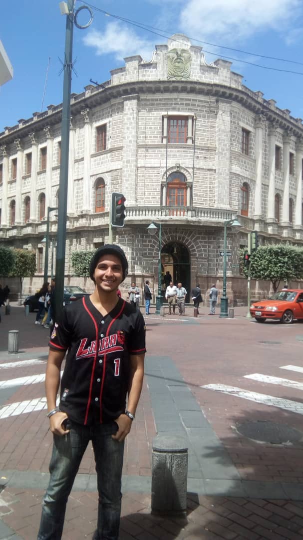 Centro de Ambato, con mi camiseta de los Cardenales de Lara.