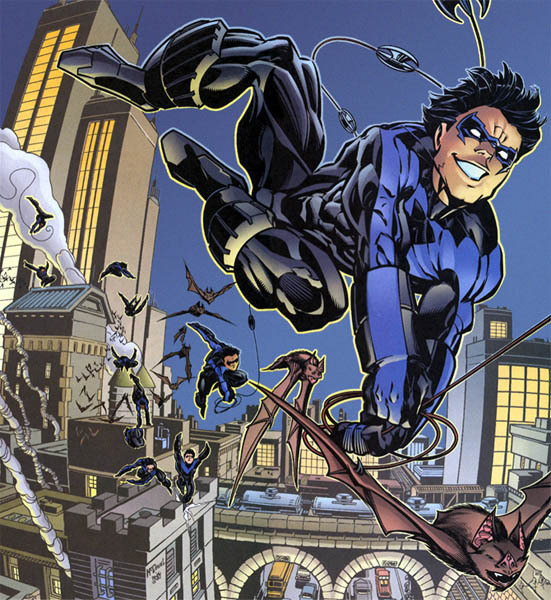 Podemos agregar como como Nigtgwing , es cuando Dick combate el crimen solo por consejo de Super man despues de separarse de Batman , Ya que Dick piensa de una manera que el Murciélago y decide trabajar solo recordando su promesa de ayudar a las personas Super man lo alienta a seguir adalente pare luego ser parte de los Teen titans