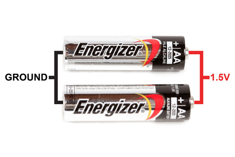 Puede que te preguntes ¿Cómo puedes alimentar cualquier cosa si las baterías son sólo 1.5[V]? La respuesta es bastante simple. Los conectamos en serie.