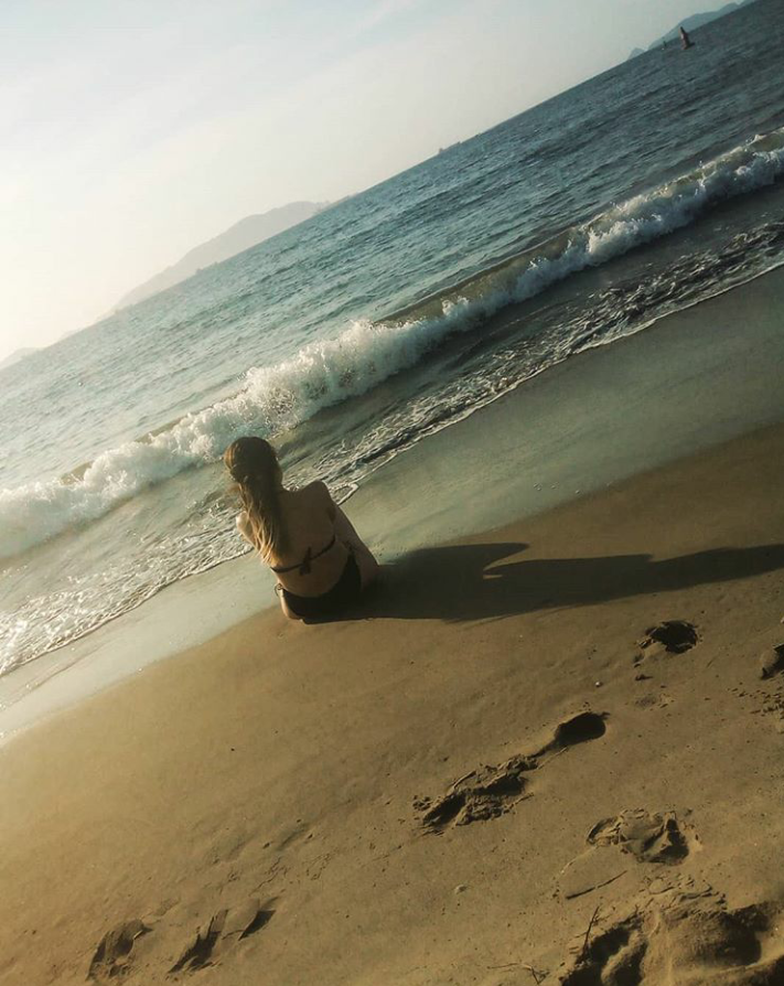 Cerrando los ojos y sentir la brisa en la piel como una caricia de unas manos inexistentes pero son esas manos las cuales no quieres que te dejen de acariciar, mientras las palmas de mis manos están en contacto con una suave arena y roces lentos de olas que van y vienen. Abrir los ojos para encontrarme con el lienzo más maravilloso que quizás pueda ver, una pintura que solo la naturaleza puede pintar, que ni una cámara de miles de pixeles puede capturar, solo tus ojos son los encargados de capturar y solo tu mente capaz de guardarlo de la manera más segura.