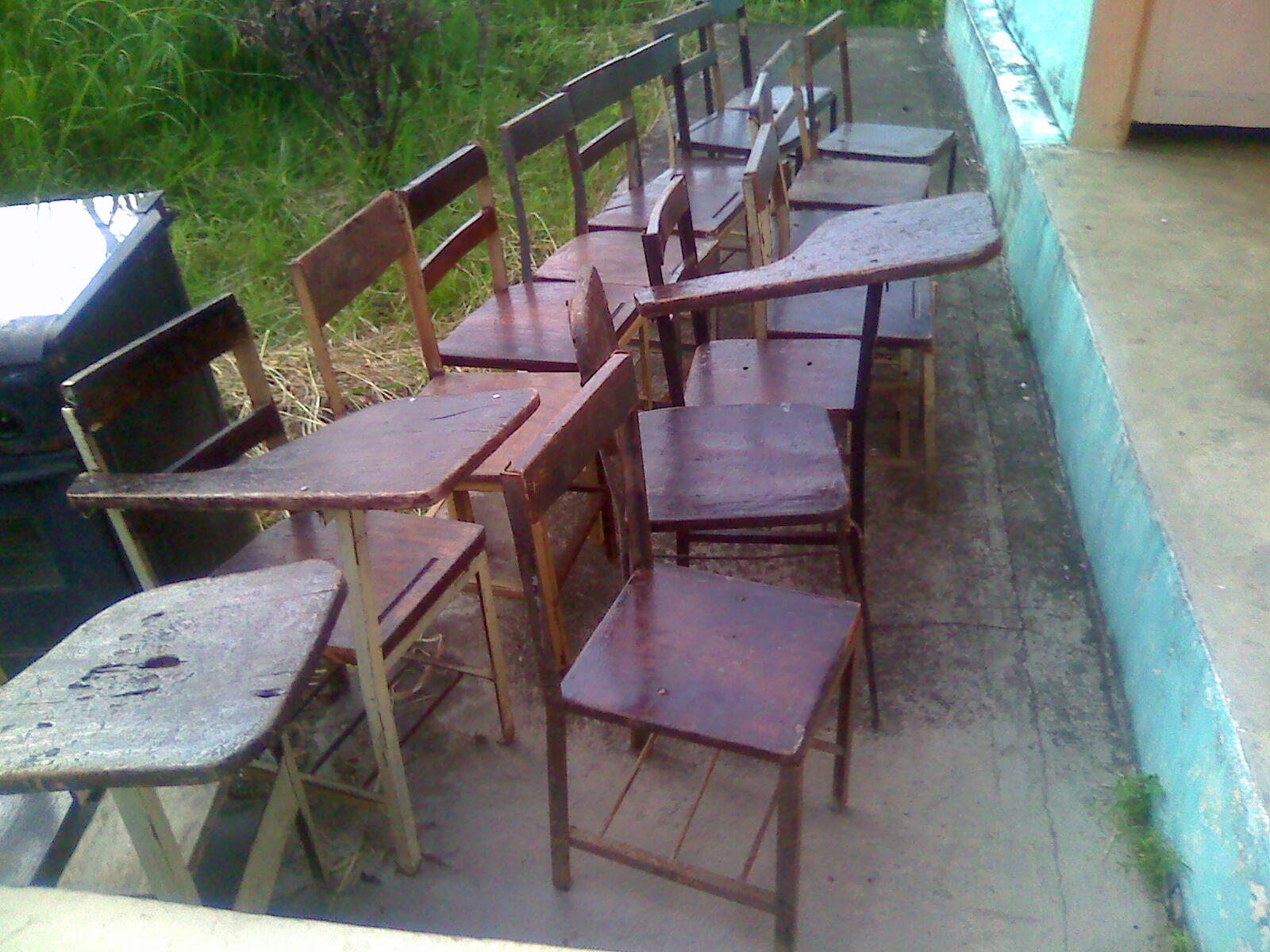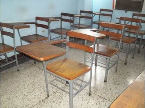 Llegados al depósito les dije que cada uno de ellos agarrara un pupitre dañado, así que lo agarraron y así salimos a un lado del salón donde los colocaron.