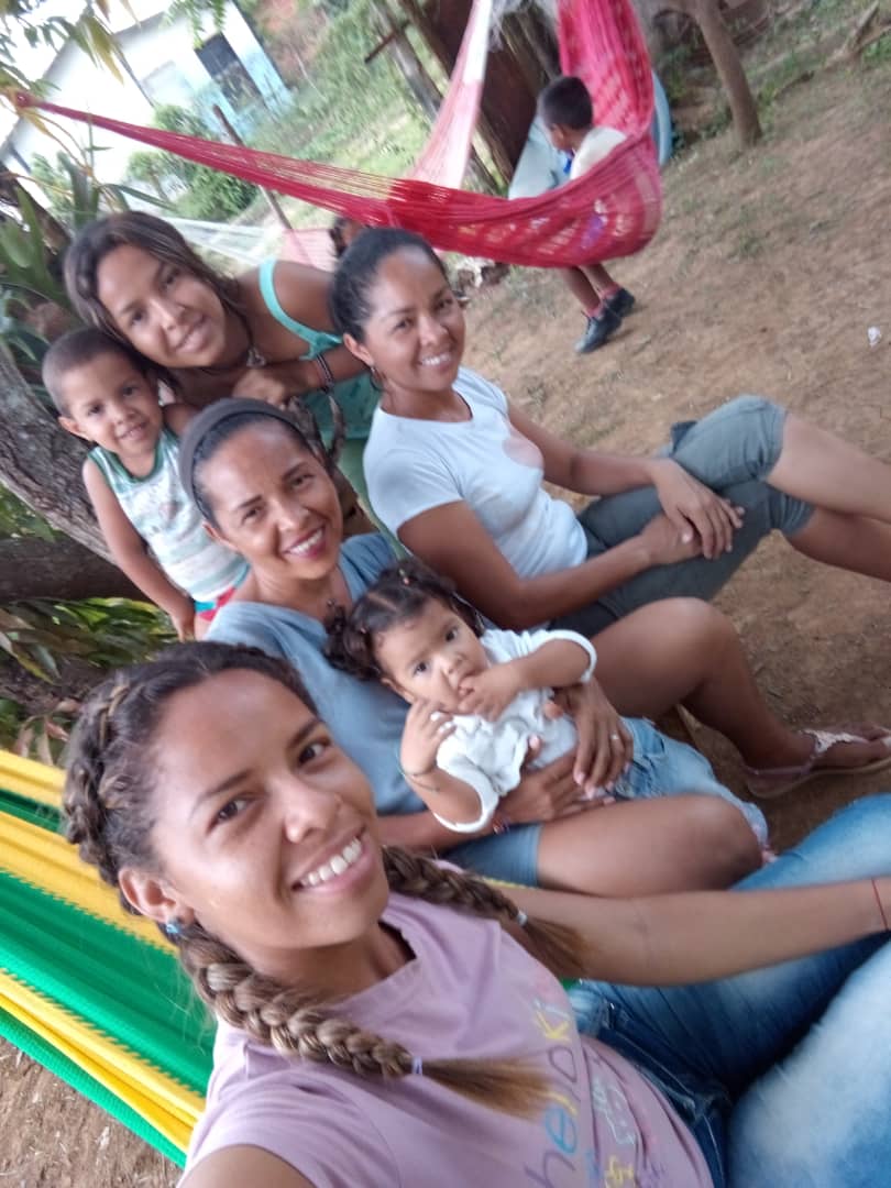 Ayer por la tarde vinieron a casa mis hermanas de visita, nos sentamos en el patio de la casa debajo de la mata de mango, sacamos los chinchorros para disfrutar de lo fresco que estaba el ambiente.