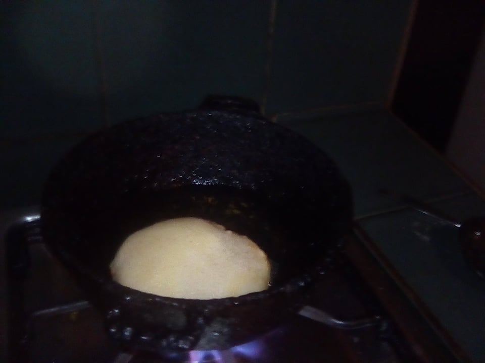 Aprovechando que en la caja del CLAP, llegó un kilo de azúcar y aceite para darnos la oportunidad de variar un poco nuestra comida, preparando unas arepitas abombadas y cenar.