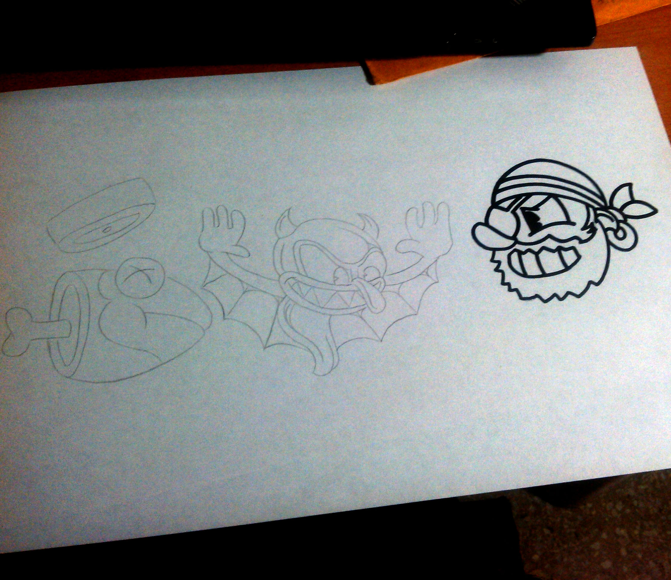 La verdad me gustó tanto que ya no podía dormir sin antes hacer dibujos "flash" al estilo tradicional de los personajes principales, como tatuador dibujo las cosas que me gustan y esta no es la excepción.