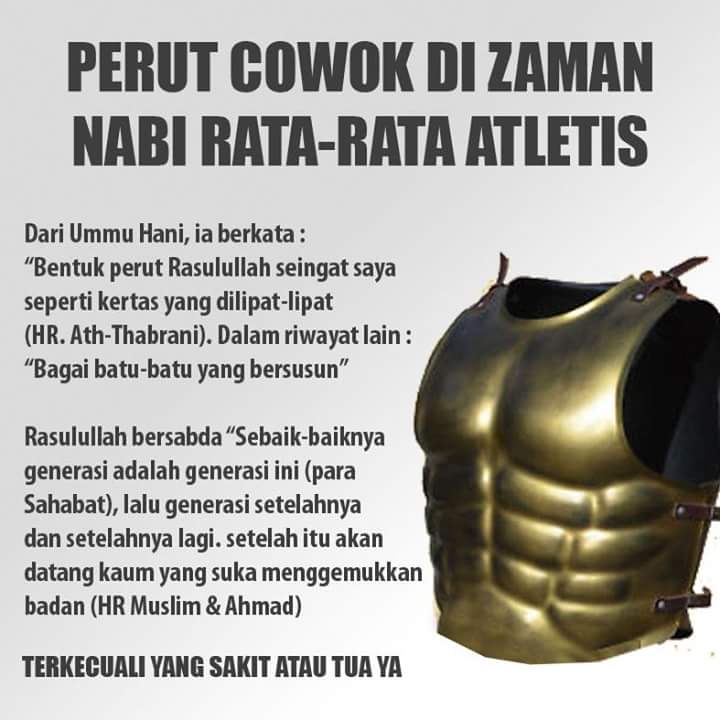 Nah, itulah maksud judul di atas "Cowok sholeh perutnya gak buncit". karena cowok sholeh tekadnya kuat untuk menjalankan Sunnah berolahraga, terutama BELADIRI. karena Arrijalu Qowwamuna Alan Nisa (lelaki itu pemimpin/pelindung bagi wanita)