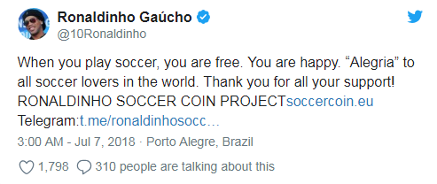 That is cool!! Ronaldinho is a good bet for Crypto eventhough he is not in his Barca glory days anymore!