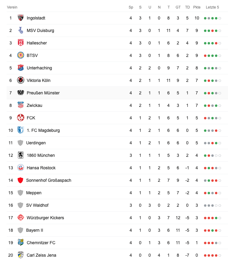 der dritte Spieltag ist zu Ende, nur noch Mannheim und München haben ein Spiel offen. Für meinen 1 FC Magdeburg hat die Saison nicht so toll angefangen und nach dem Abstieg in der letzten Saison ging das Zittern weiter. Nun haben sie aber gegen Meppen gewonnen und man kann nur hoffen das es so weiter geht. Immerhin erinnere ich mich, das sie in der Aufstiegssaison auch Anfangs in der dritten Liga ziemliche Startprobleme hatten.