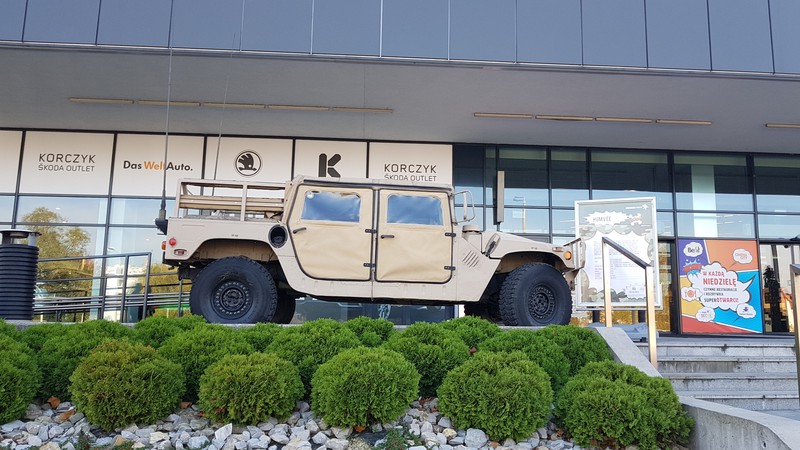 A military picnic took place under the shopping mall. I paused to see the military Hummer up close.