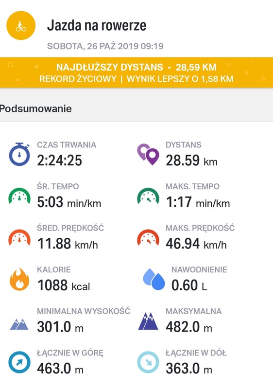 the ride itself (with rest stops) lasted almost two and a half hours. I set my new record for the length of the route - over 28 kilometers. And most importantly for me - I burned over 1000 calories (if heart rate monitoring worked, there would be much more calories burned).