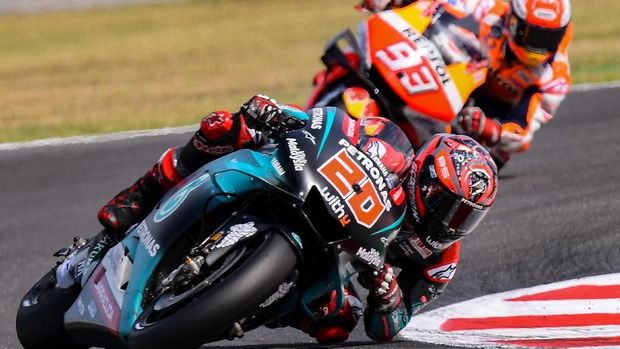 Lap pertama diselesaikan Vinales dengan berada posisi terdepan, disusul Quartararo dan Marquez. Marquez sempat kesulitan di awal start, tapi mampu naik dua posisi setelah lap pertama ke posisi tiga.