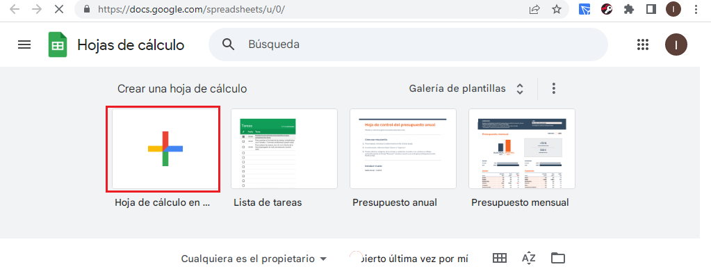 Continué seleccionando la opción de Crear hoja de calculo en Blanco.