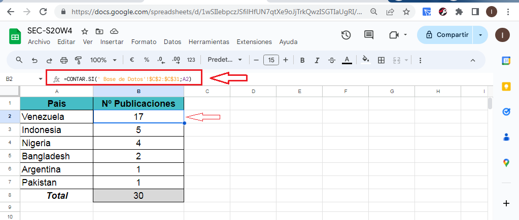 Lo primero que hice fue copiar nuevamente la lista de los 30 datos del país de los autores de las publicaciones.