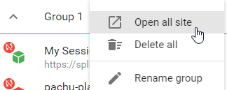 You can open all stored sessions from a certain group (i.e. all splinterlands accounts) by clicking the gear icon then choosing "Open all site" for a very quick start up experience.