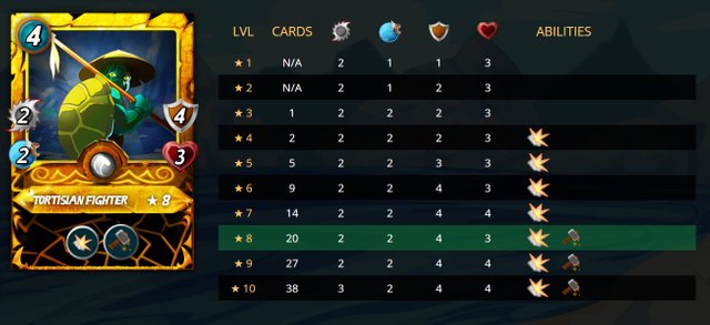 Last week I saw a very good post by @flawy about the UNTAMED Tortisian Fighter card, and as I am very anxious and impulsive, immediately decided to follow the tip and bought 14 new turtle gold foil cards that cost $ 0.70 each one (price is now $ 0.90), which was the amount I needed to combine it and reach level 8.