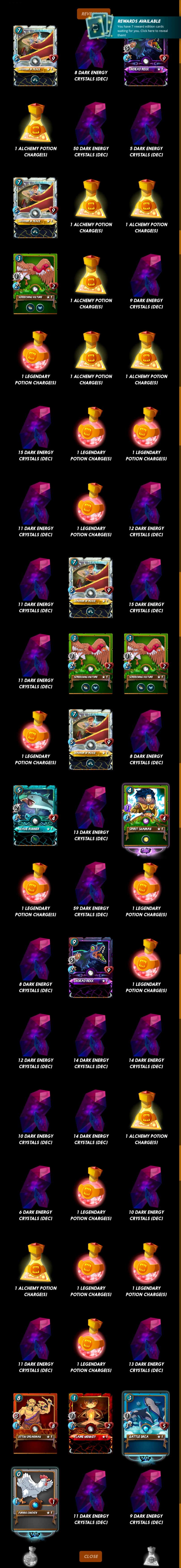 As you can see, it's not the best reward. Got a couple of DEC, two rare cards and one epic. Hopefully the next season will drop better rewards.