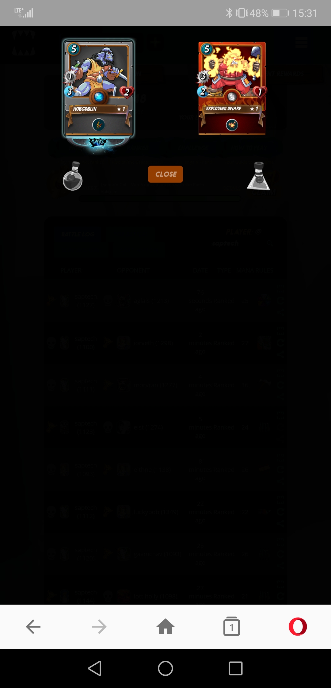 Daily quest rewards -- wow, one rare😉😂saptech (52)in #spt • 7 years ago Hello Steem Monsters Fans! I bring You another set of daily quest rewards. Today my quest was Lyanna call. Very long quest, not easy... My picks : One rare and vey useful Exploding Dwarf- not bad... Cheers #battle #steemace #sportstalk #marlians