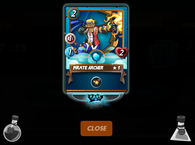 Steem Monsters From Zero to Hero: Episode VIIsm-pro (49)in #spt • 7 years ago The quest for today was for the Fire splinter. It was easy to finish, and I was rewarded with a Pirate Archer for doing so: My account holds now 266.191 DEC and 0.192 STEEM. #supdork #steemmonsters #games #steemromania