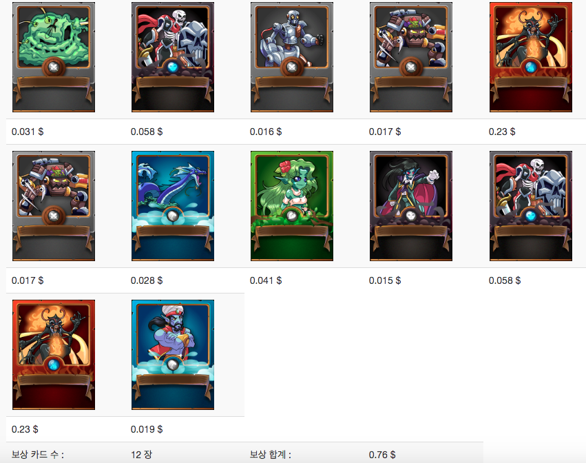 만렙 채우고 남은 카드들을 판매하고 있습니다.