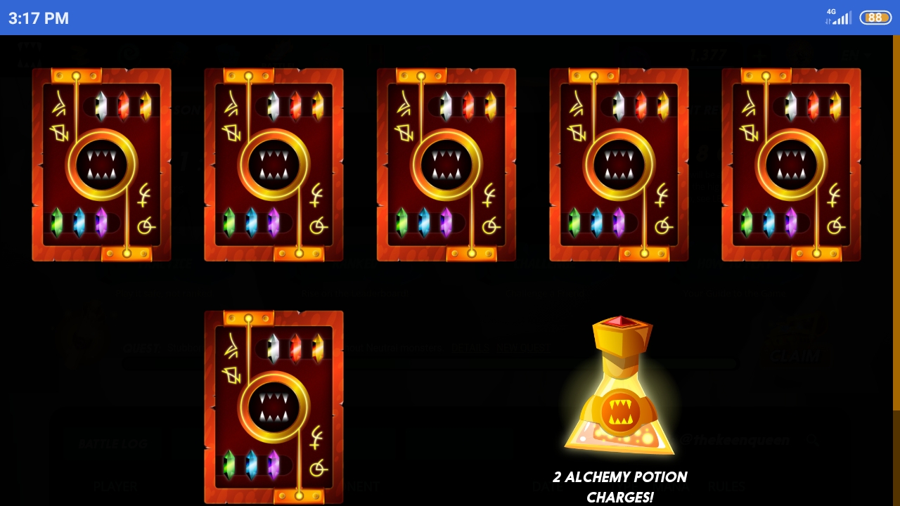 Potions are pricey with a bundle of 100 to 500 charges, so it is nice to get it for free through the daily rewards. Despite the fact that many have used it but nothing special dropped, I won't take it to the heart 😉 as long as I have fun on battling and rumbling.
