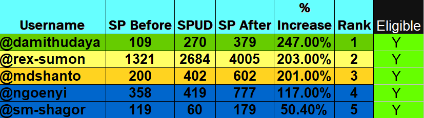 - @damithudaya is a member of the Steem Sri Lanka Team and is participating in his first #spud4steem, a power up of 269sp has them in First place - well done