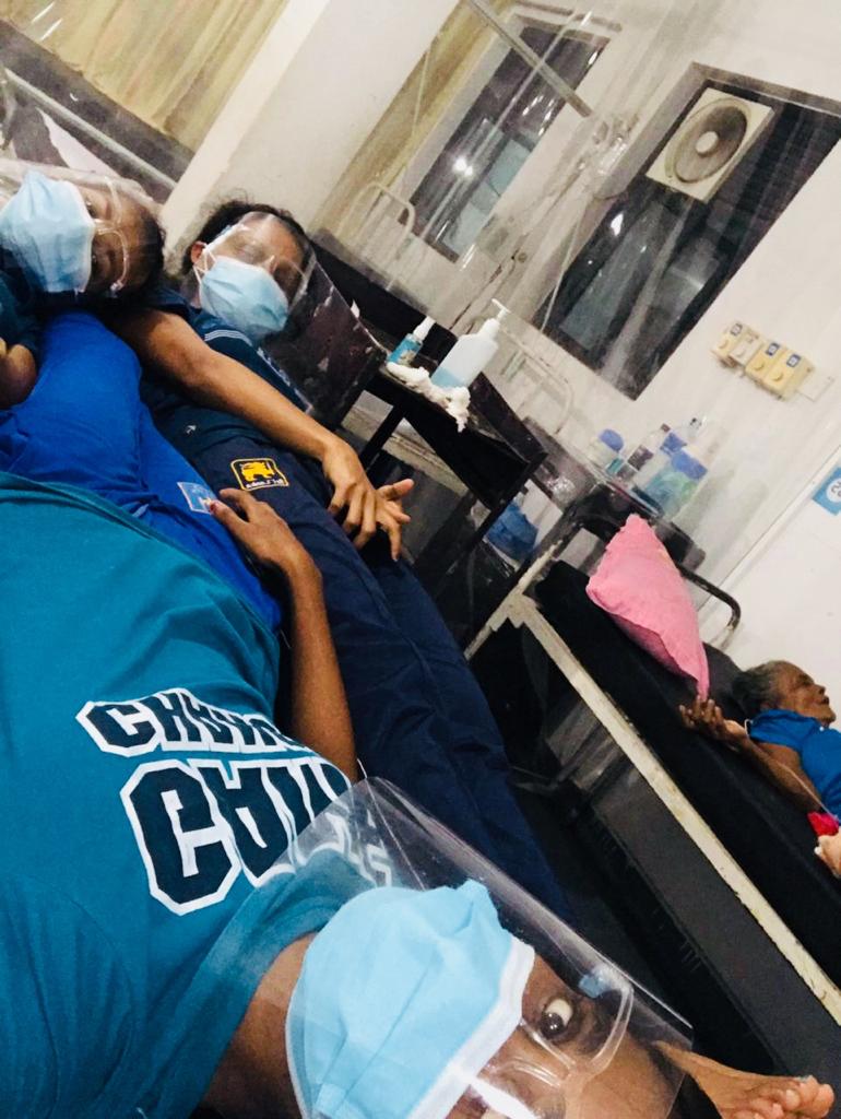 අපි හිතුවේ PCR ගන්න යනවා කියලා. එතකොට තමයි දැනගත්තේ අපිට PCR කරනකම් එහෙ ඉන්න වෙනවා කියලා. අපි hospital යනකොට උදේ 9 ට විතර ඇති. කාගේ වැරැද්දක් නිසා ද දන්නේ නෑ අපිට PCR කළේ රෑ 10 ට. නිකං මරු කටට ගිහින් දැම්මා වගේ හැඟීමක් තමයි අපි හැමෝටම දැනුනේ.18 වාට්ටුව කියන්නේ PCR result pending ward එකක්. ඇත්තටම කියනවා නම් එතන බලන් ඉද්දි ගොඩක් අය positive වෙනවා. මරණ බය වගේ දෙයක් නොදැනුනාම නෙමෙයි. ඒ නිසා වෙන්න ඇති වතුර ටිකක් වත් බොන්න අපි මාස්ක් එක වත් ගැලෙව්වේ නැත්තේ. උදේ ඉඳන් හම්බ උන කෑම රෑ වෙනකොට විසික් කරනවා ඇරෙන්න අපිට වෙන විසඳුමක් තිබුණේ නෑ.