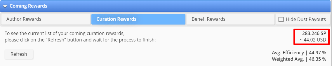As we promised, we are going to distribute delegation rewards to our generous delegator. For this week, We got 335.32 steem as our curation reward. We have to distribute 80% of the curation reward this week.