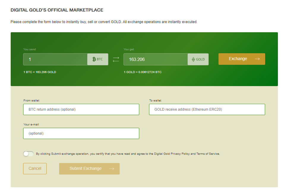 To facilitate the liquidity of GOLD-token, the DIGITAL GOLD LTD Company was created its own market called the DIGITAL GOLD Marketplace. This is done to provide easier options and allow users to make transactions directly.