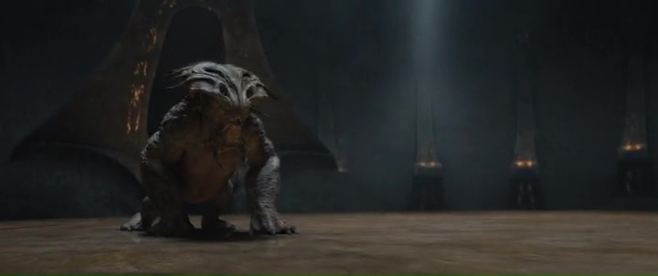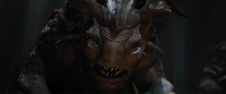 Gleich zu Anfang des Films steht Kirk vor den Tinaxi (??? so habe ich den Namen der Rasse jedenfalls verstanden). Grölende Stimmen der Aliens, bedrohliches Aussehen und Drohungen…….., dann entpuppen sich die Dinger als Zwergerln die kaum bis zum Knie reichen an Körpergrösse. Da habe ich diesmal tatsächlich laut und herzhaft auflachen müssen.