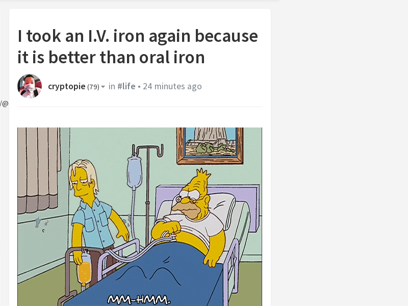 Follow me to vote @cryptopie-I took an I.V. iron again because it is better than oral iron
