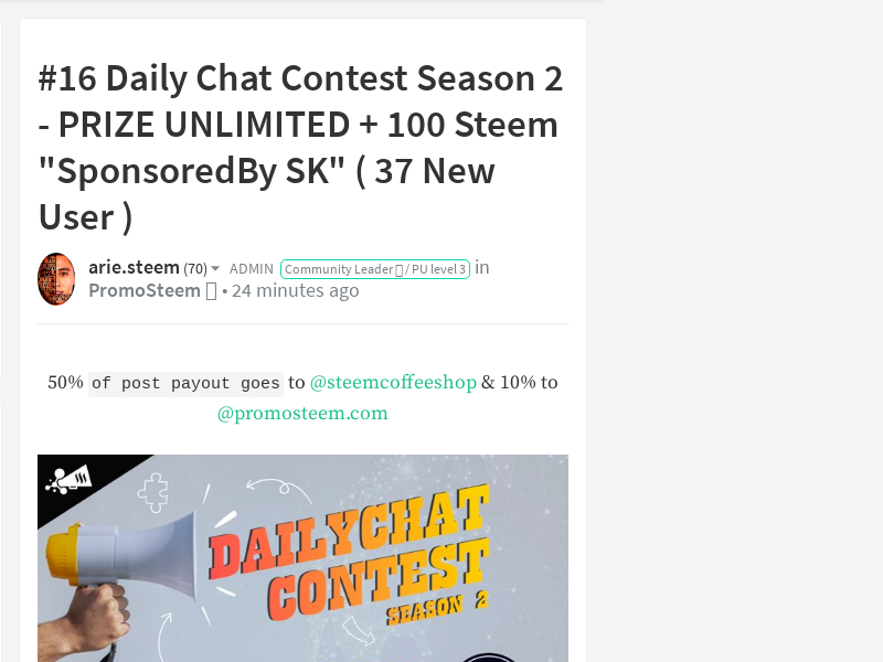 Title:#16 Daily Chat Contest Season 2 - PRIZE UNLIMITED + 100 Steem "SponsoredBy SK" ( 37 New User )
