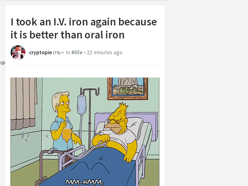 Follow me to vote @cryptopie-I took an I.V. iron again because it is better than oral iron