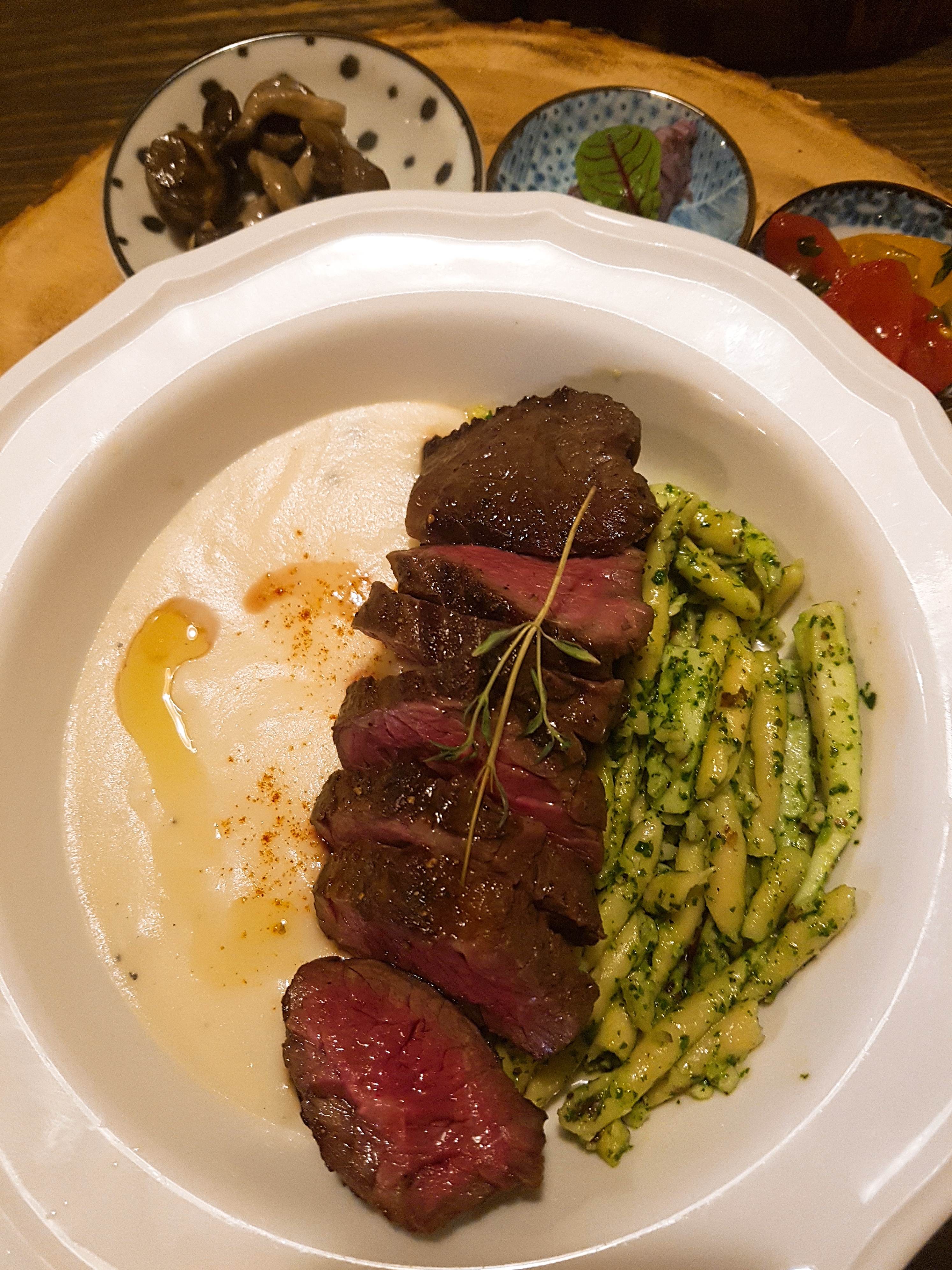 스테이크 옆의 파스타는 그렇게 특별한지는 모르겠지만,