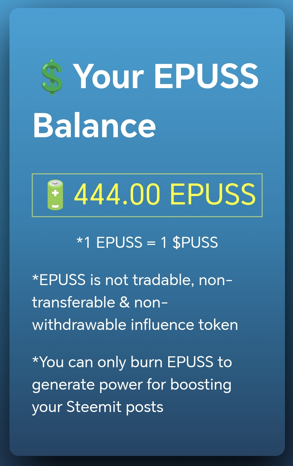 I deposited $PUSS coins on the Pussteem to boost my posts. After the deposit, I published around 6-7 posts, but none of them are getting boosted, and I don't see any EPUSS tokens being burned either.