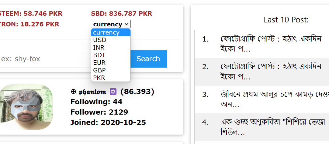 - This tool supports the 6 most famous currencies and helps to check steem and SBD prices in your native currency.