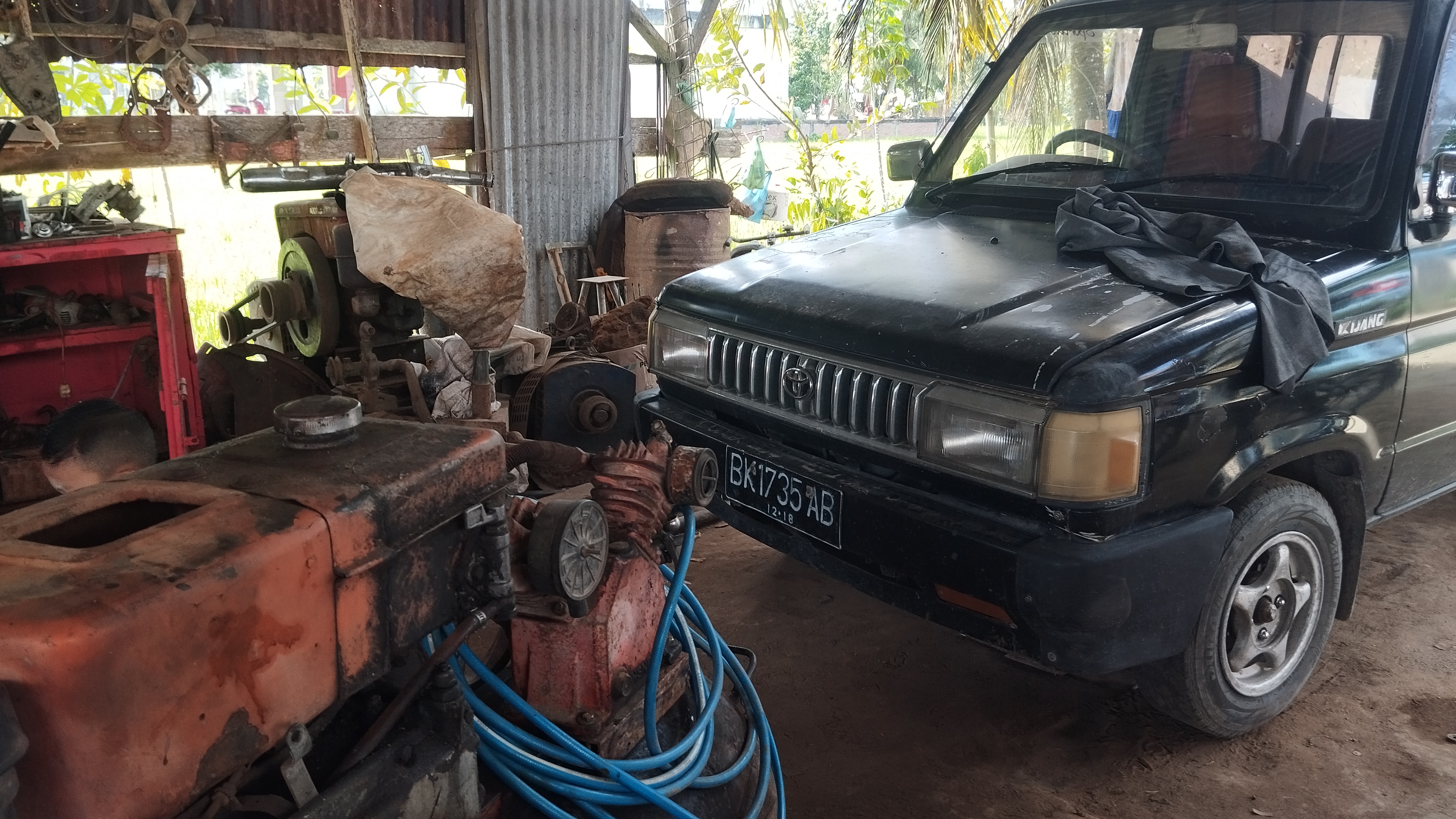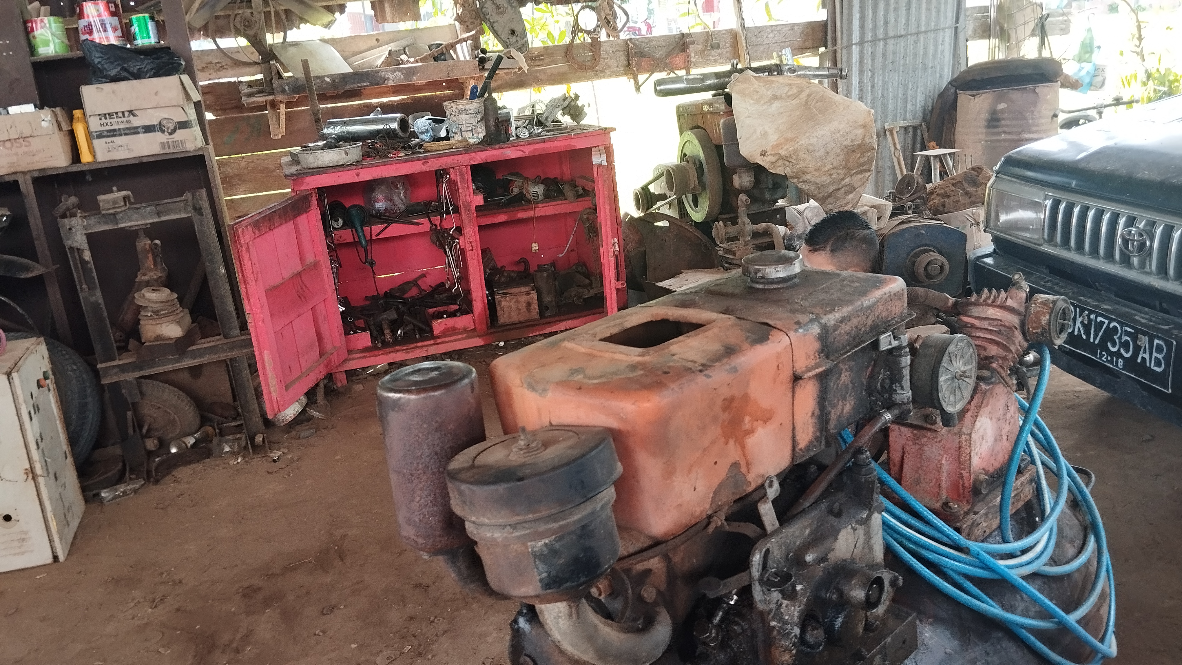 Generally, this workshop handles old cars and it is also possible that they also use the latest engines because the mechanics are experienced. Most of the cars that are repaired are cars that work hard with heavy loads, such as palm oil transport cars owned by private companies, many are handled here, starting from engine repairs and also body repairs by welding, dompol and so on.
