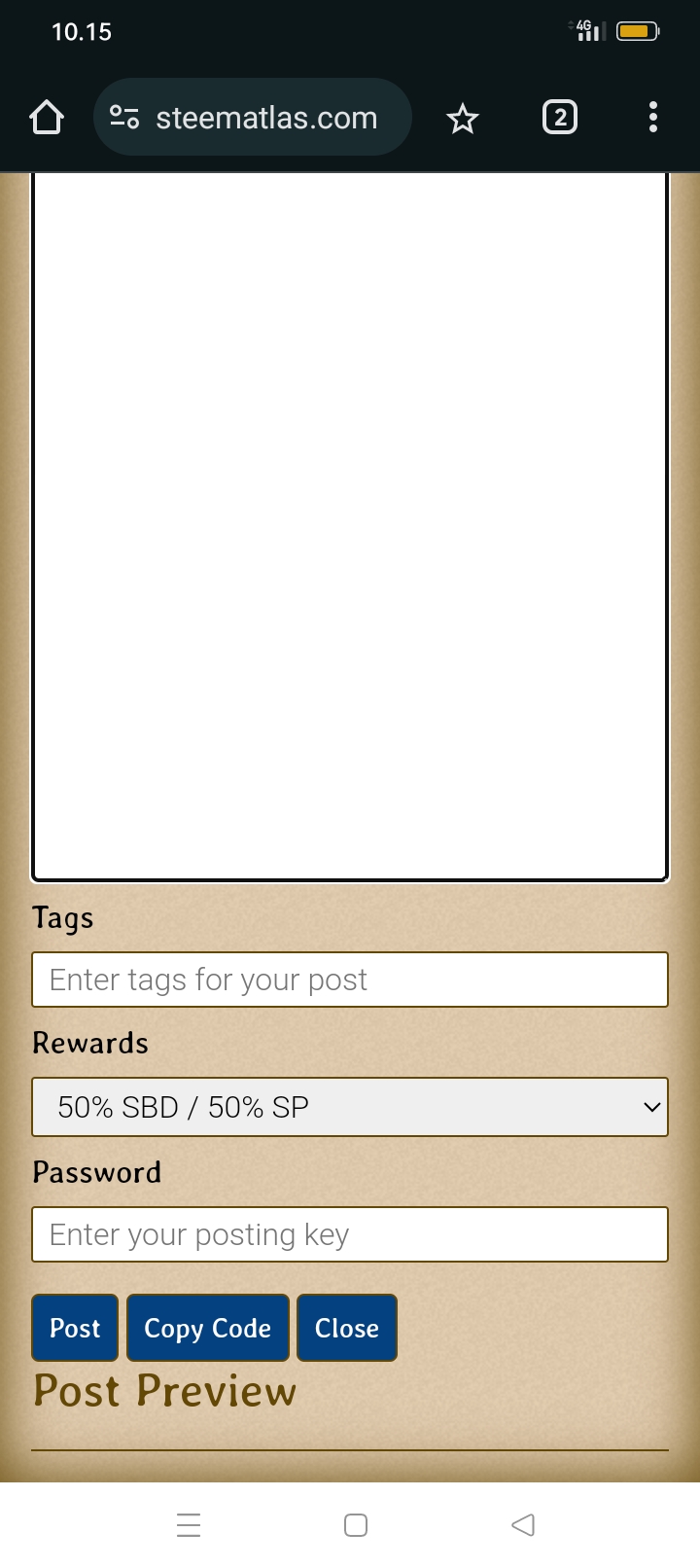 Alhamdulilah bisa membuat post melalui steem atlas pak Ded. Tapi dengan steem atlas kita tidak bisa membagikan reward post ya?