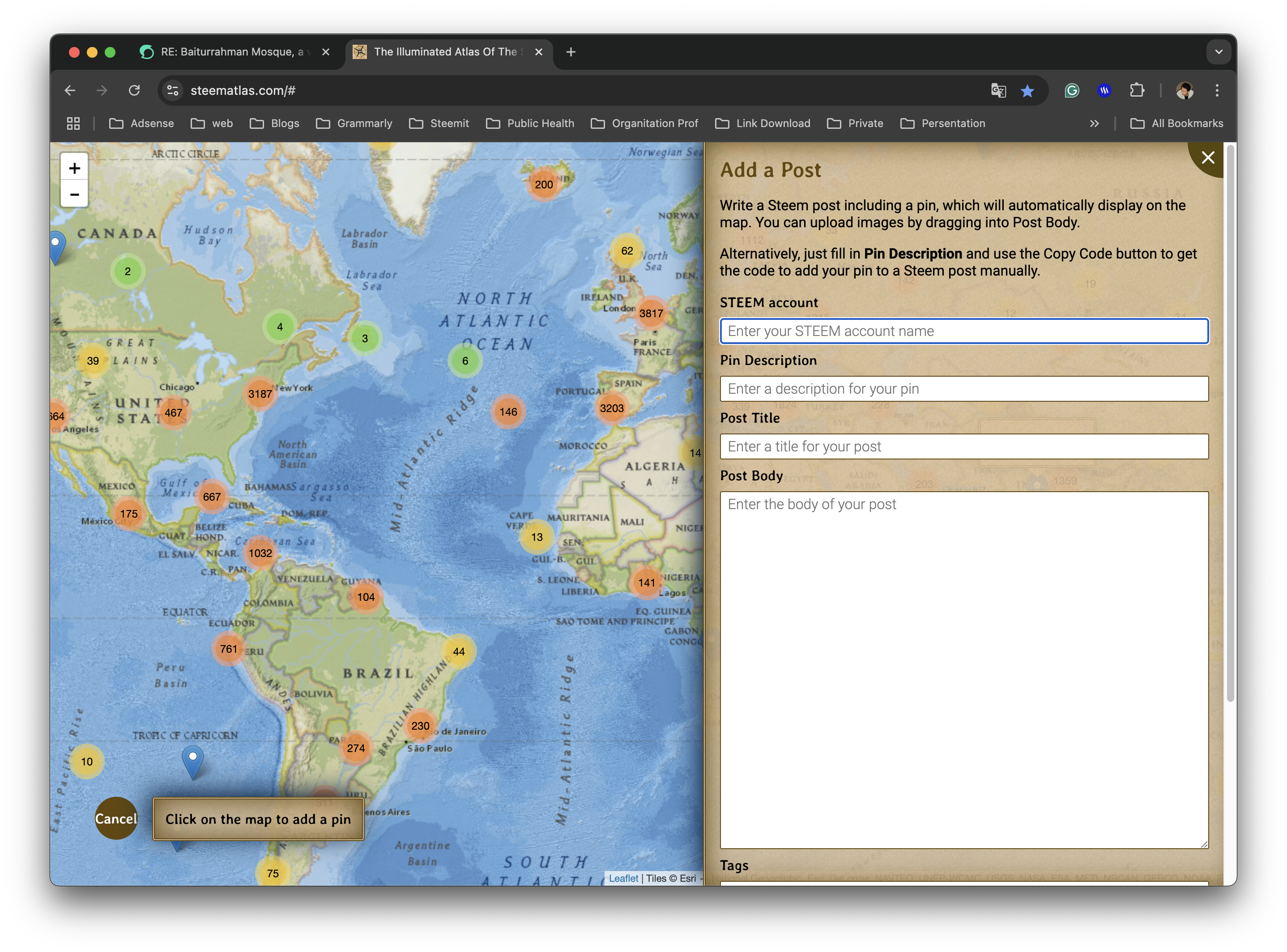 Pilih lokasi dan akan keluar seperti gambar diatas. Gunakan tag steem-atlas