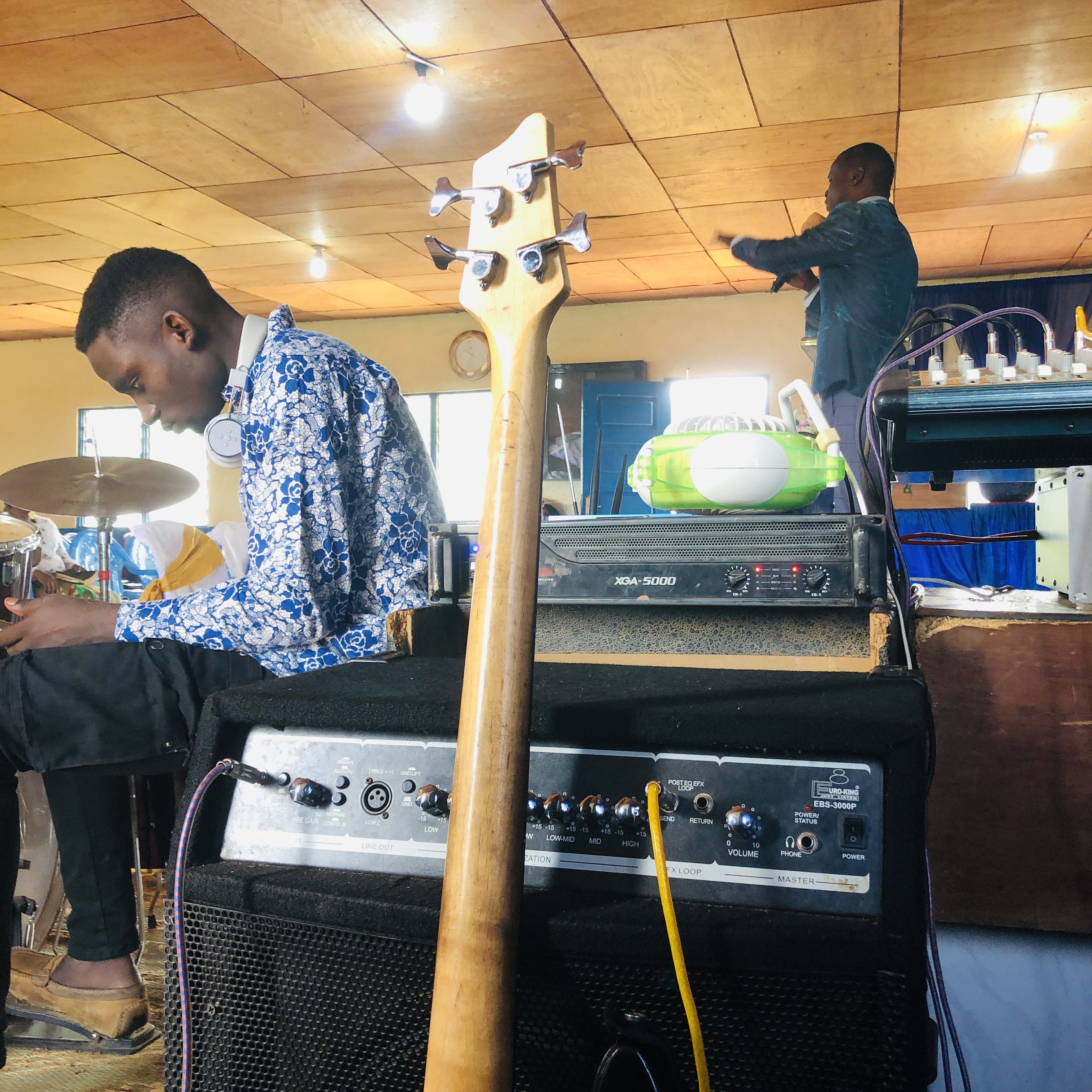 I woke up from sleep at 7 am after sleeping for just about 3 hours since we had all night practice and I slept at about 4 am in the morning. I had to go for a wedding at mendankwe so I went outside and brushed my teeth and washed my face, together with a friend OBED, we left for the wedding. When we got to the place, we arranged the sound system and got information that the drummer who is supposed to play will not be available. Since OBED is also a drummer, we had to call for another pianist.