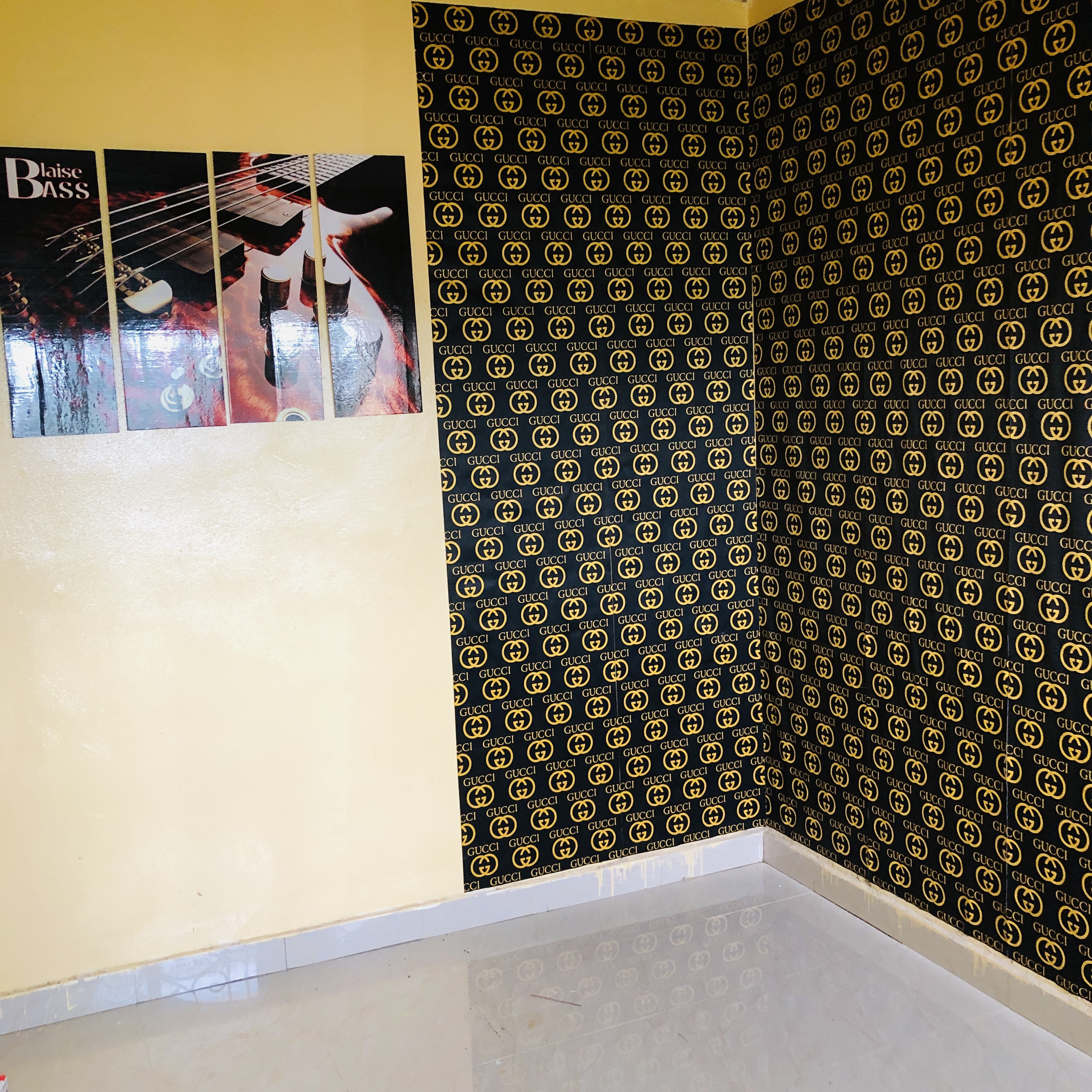 Today Saturday, I woke up from bed at 6:30 am, first thing I did was I took my phone and replied to some messages and after that I brushed up my teeth and washed my face. I had paid for a room at another cité just few meters away from where I stay and this new cité is where @nackasnelson stays. So after washing my face, I went over to the new place , with some wall carpets which I bought few days before and I hung it up on the walls of the room.