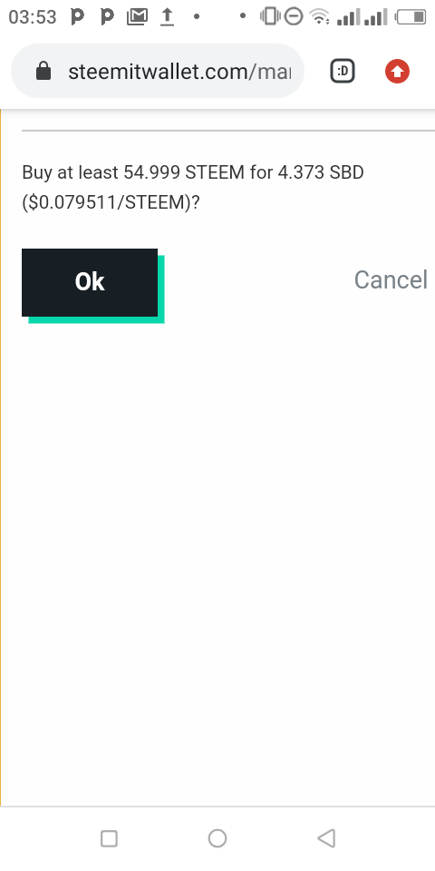 - As you can see, i requested for 54 steem and so had to pay that amount with SBD. After I clicked on buy steem then another platform for me to confirm opened.