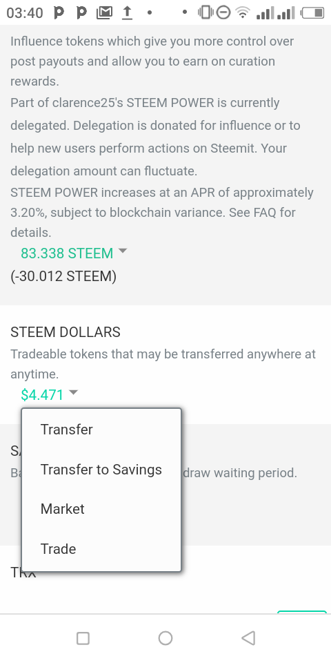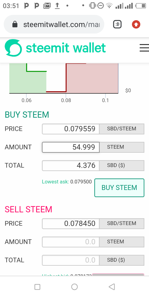- I had no steem so I bought some steem first by clicking on the drop-down button on my SBD account.