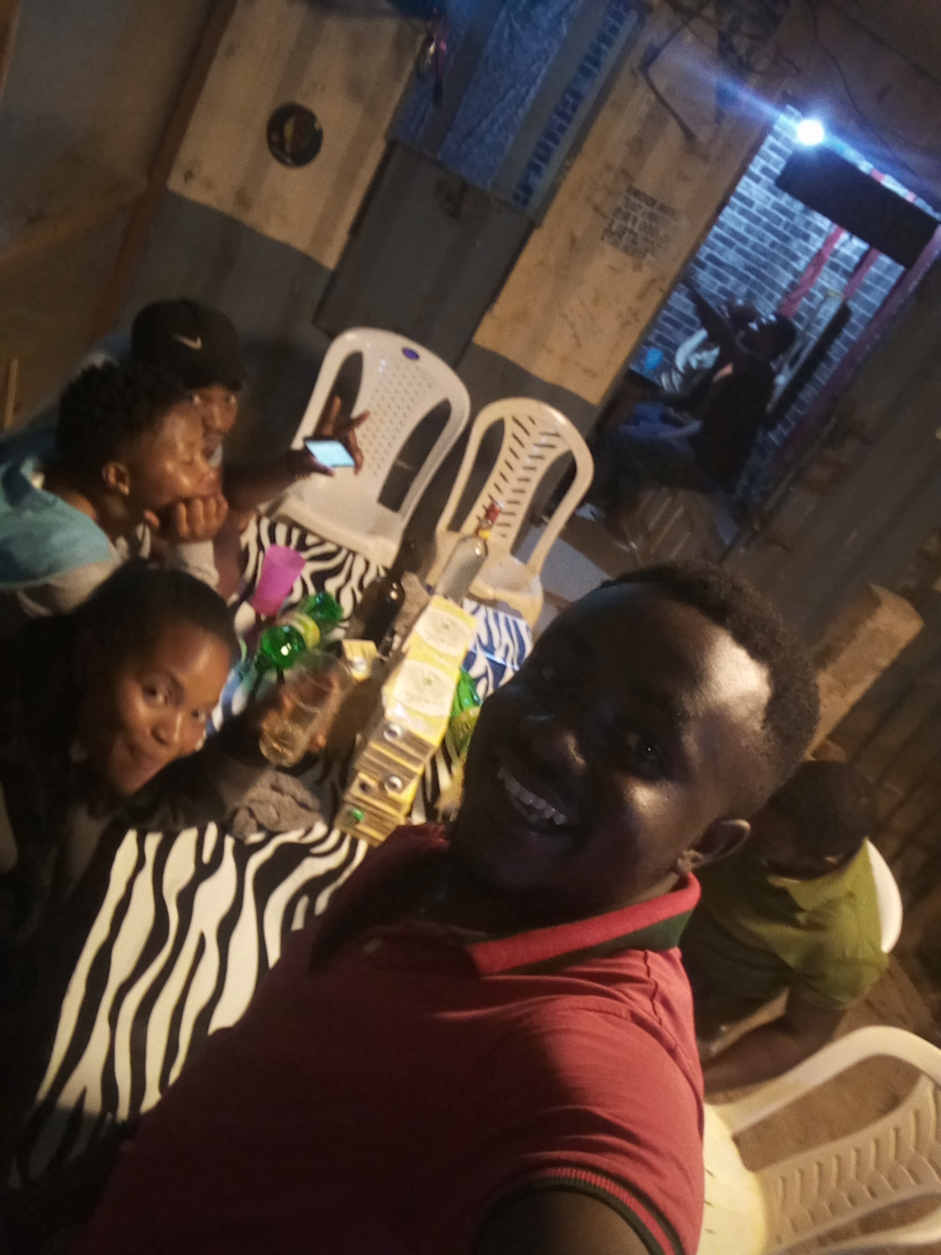 At 5:00pm my landlord called me to come to the road side and meet him there for us to chill so I quickly went there and we started drinking. I took one glass of Castillo and I could not take another because alcohol does not like that much so I continued taking but only juice 🥤.